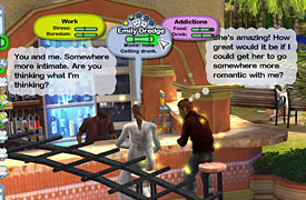 The tools The Movies give us to make movies are pretty robust, although at times it is hard to keep scenes looking cohesive if you don’t keep track of costumes and the actors. Also, it’s not intuitive in creating some of the scenes. The movie making portion of the game was what I was looking forward too, but after using it I stuck with the computer generated scripts. Later on you can add sound, voice and all the other bells and whistles of current day movies through research and time elapse.